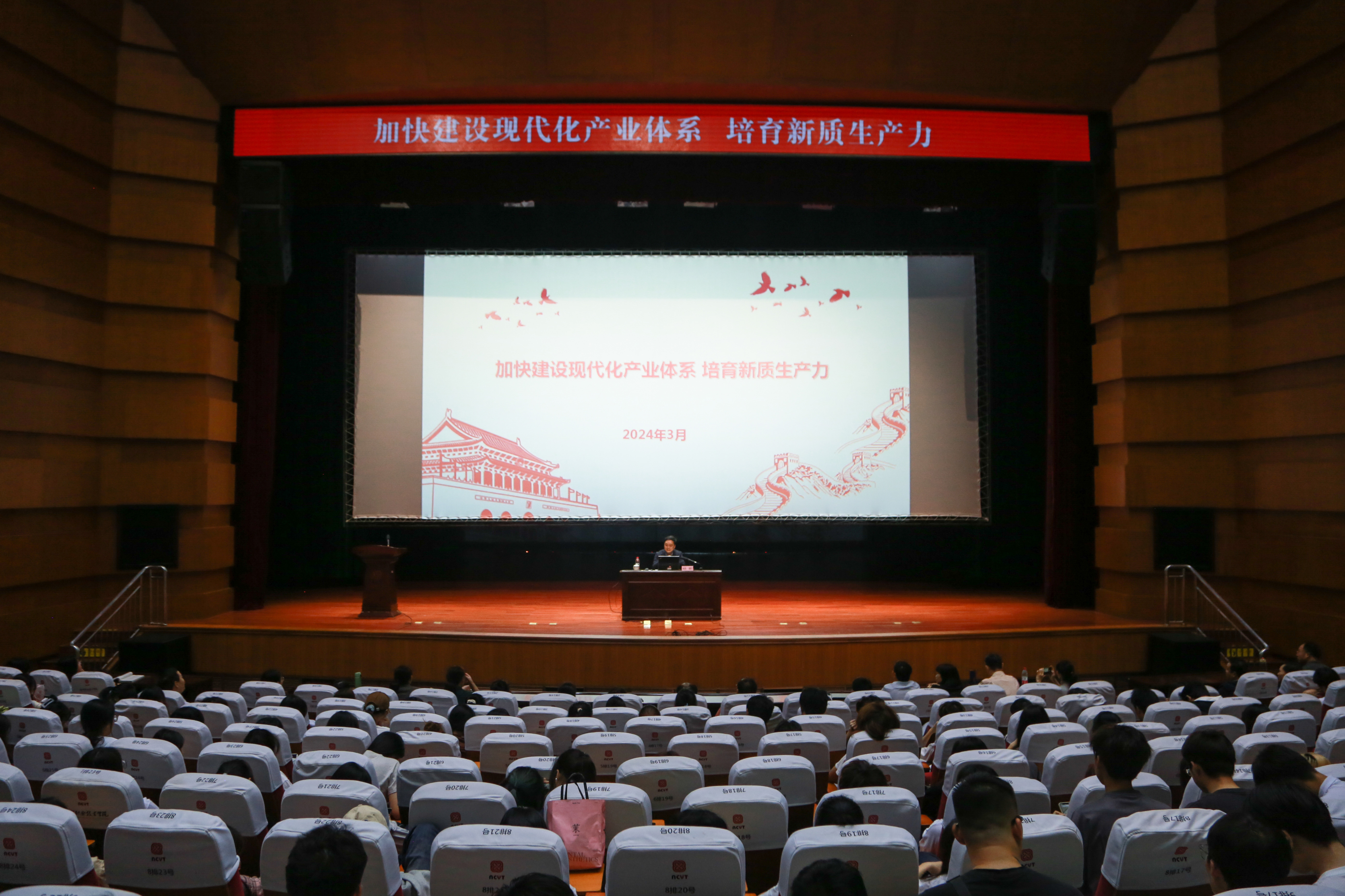 杨鹏博士以《加快建设现代化产业体系培育新质生产力》为题,从“中国式现代化和重大方略要求”、“新型工业化和新质生产力”、“高质量发展:要素变革和融合联动”、“绿色新跨越:‘双碳’背景和能源革命”、“转型升级:不仅仅是制造业”、“追赶突破:解放思想、强化要素、优化环境”六个方面,结合大量具体实例,对新型工业化和新质生产力提出的时代背景、内涵特征和现实路径进行了深入浅出的解读和阐述。