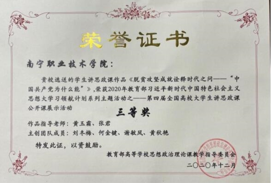 指导员工刘冬梅获得第四届全国高校老员工讲思政公开课展示活动三等奖