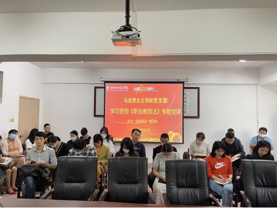 5月13日,伟德体育党支部开展学习贯彻新修订的《中华人民共和国职业教育法》专题党课,党课由支部书记黄羽新主讲,全体党员参加专题党课学习。