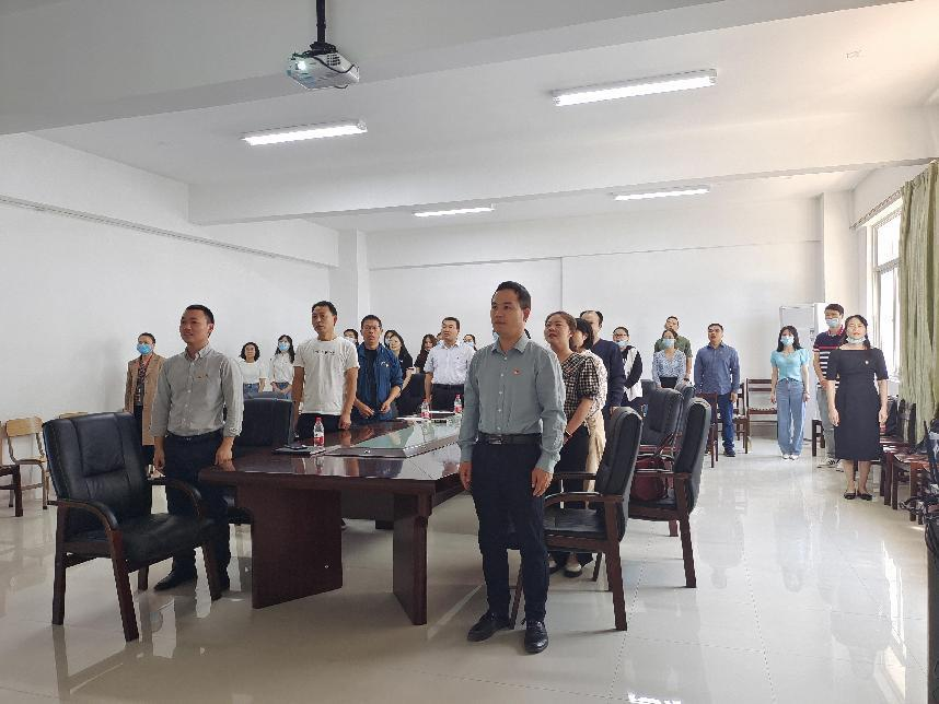 伟德体育党员同志跟唱国歌(岑家峰/摄)