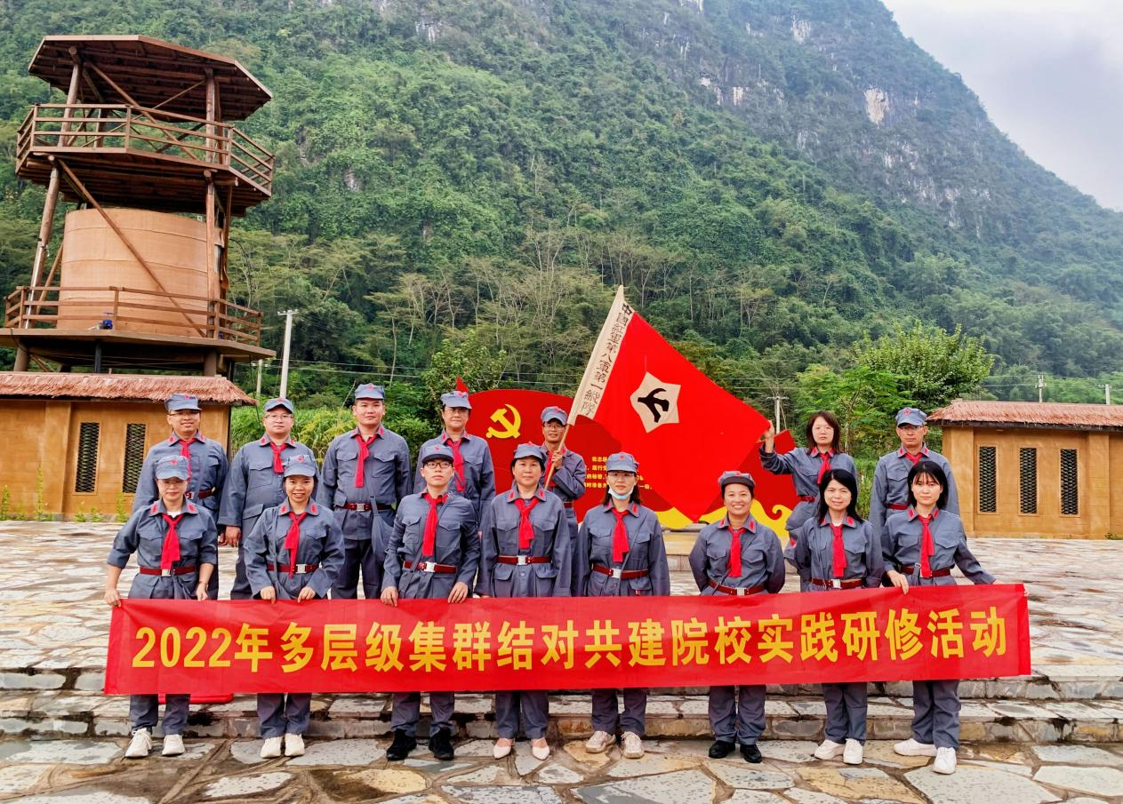 为贯彻落实自治区教育厅“广西高校思想政治理论课多层级集群结对共建大行动”实施方案,进一步提高多层级集群结对院校思政课教师党性修养及教学能力,11月18日至19日,伟德体育牵头组织本院及结对共建公司广西工商职业技术公司、广西体育高等专科公司、广西科技职业公司、广西信息职业技术公司思政课教师代表赴龙州爱国主义教育基地开展实践研修活动。
