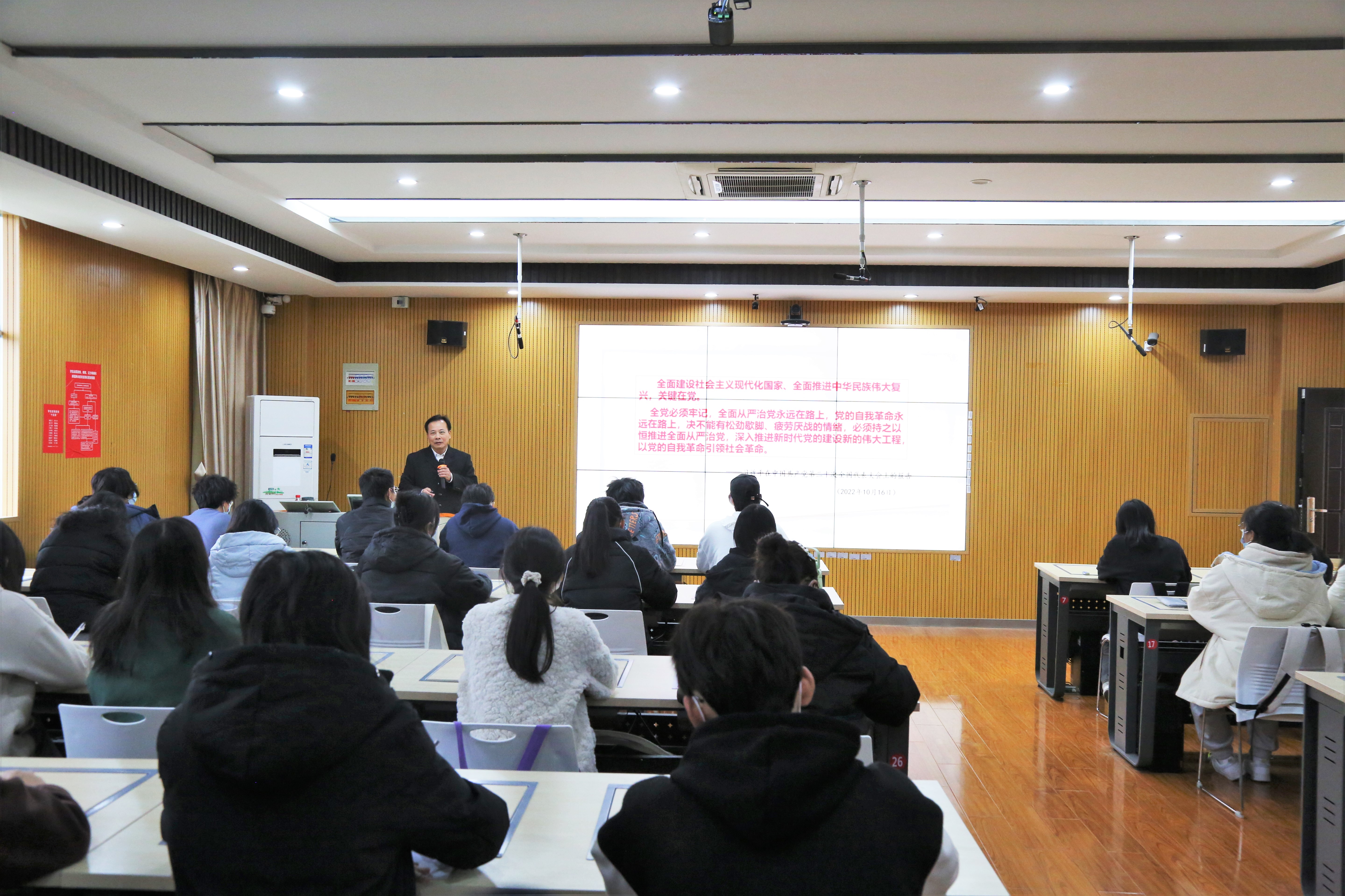 课堂上,黄明瑞书记结合党的二十大报告原文特别是新时代10年伟大变革、结合国内外形势以及公司“双高”建设和升本工作的实际,运用百年党史故事为同学们分析为什么要全面从严治党、为什么十八大以来管党治党宽松软状况得到根本扭转、如何理解全面从严治党这场伟大自我革命等问题,并就如何进一步结合实际学习贯彻落实党的二十大精神与同学们进行交流互动。黄明瑞书记勉励同学们要树立崇高理想,强化技能本领,争做担当有为、业务精湛、堪当民族复兴重任的时代新人。