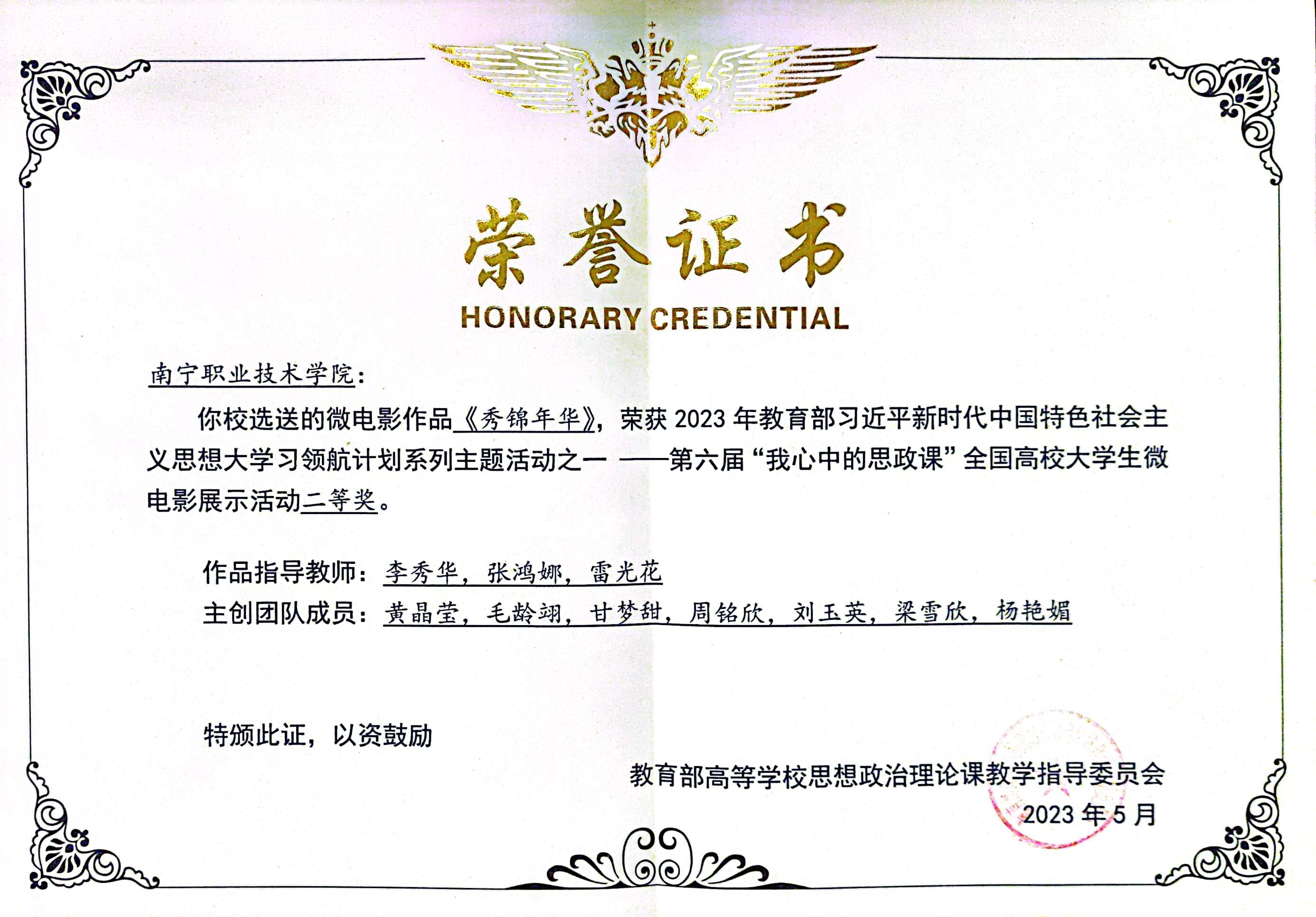 近日,第六届“我心中的思政课”全国高校老员工微电影展示活动颁奖典礼在武汉大学隆重举行。公司教师李秀华、张鸿娜、雷光花指导,传媒公司黄晶莹等7位同学主演的微电影作品《秀锦年华》荣获全国二等奖。