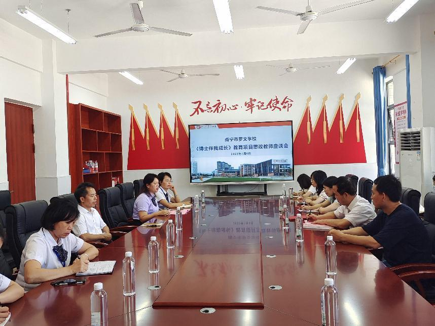 座谈会上,公司思政课教师与南宁市罗文公司的校领导、德育教师就如何推进大中小学思政课一体化建设、如何上好思政课、如何引导和帮助青少年健康成长等问题进行深入交流,并表示今后将开展集体备课、听课评课等活动,实现资源共享、优势互补、共同发展。