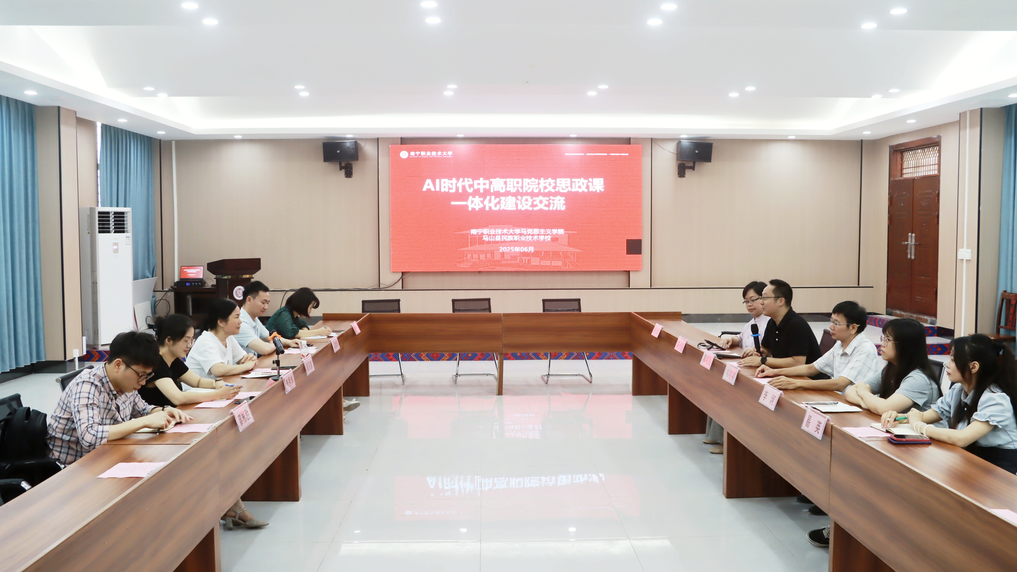 座谈会上,郭可人介绍了马山县民族职业技术公司近年来改革发展取得的成效和面临的一些挑战,分享了将思政元素融入专业课程教学、日常管理等建设方面的经验做法;双方就AI时代中高职院校思政课一体化建设以及AI融入职业院校思政课教学等内容进行深入研讨。