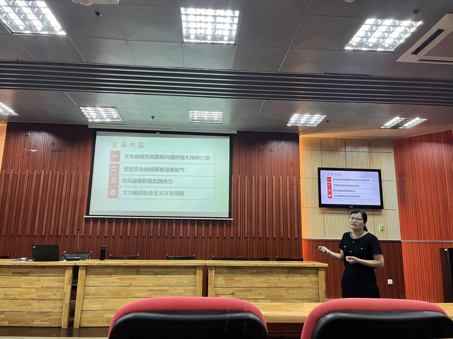 阮富娟老师从文化自信为民族复兴提供强大精神力量、坚定文化自信具有深厚底气、非凡成绩彰显实践伟力、大力建设社会主义文化强国四个方面让青年员工深刻认识文化自信为中华民族的伟大复兴提供强大的精神动力,事关国家的文化安全,事关国家的繁荣兴盛。